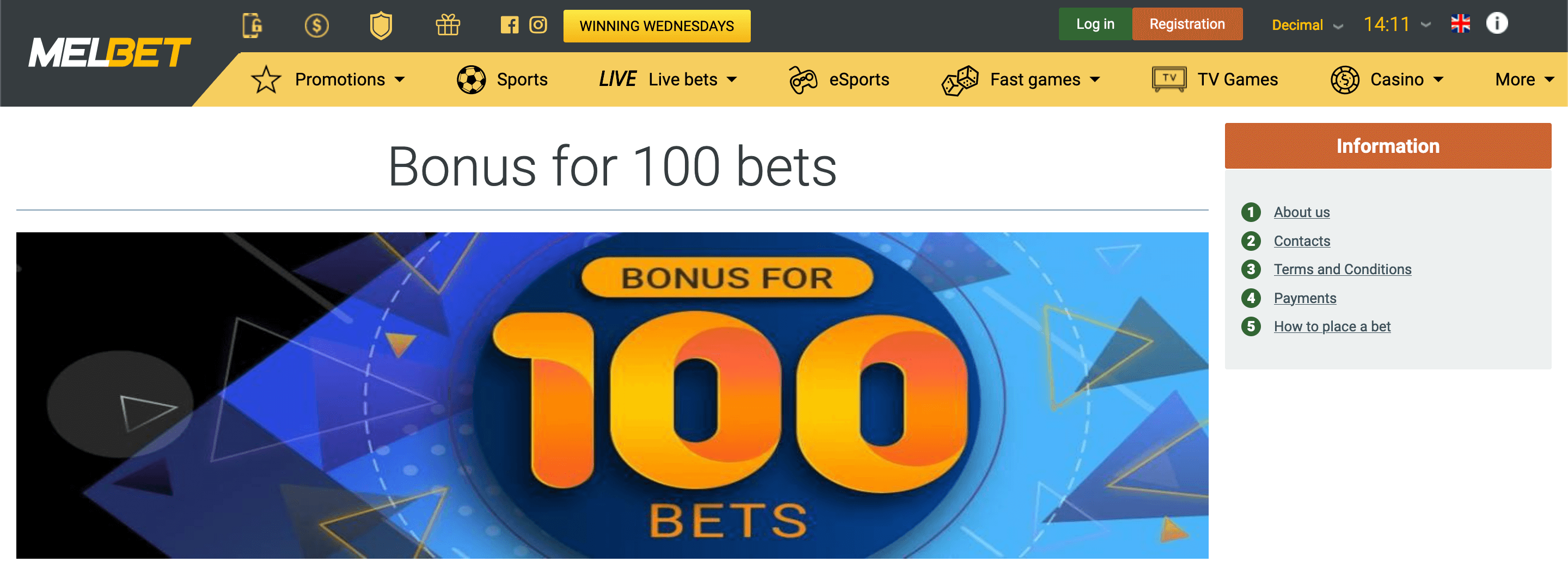 Melbet does not count any bets as wagering, but only express bets. The express must include at least three events, and for each of them, the minimum coefficient is 1.4.